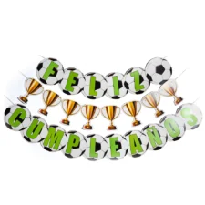Banderin feliz cumpleaños futbol pelota y copas