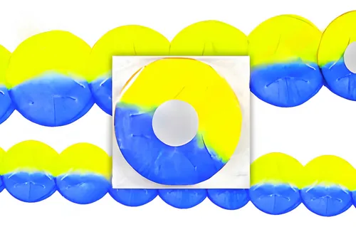 Guirnalda redonda azul y amarilla.