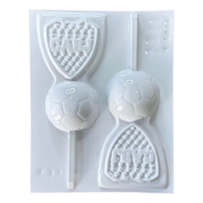 Placa de plástico para chupetín con escudo de boca y pelota de futbol.