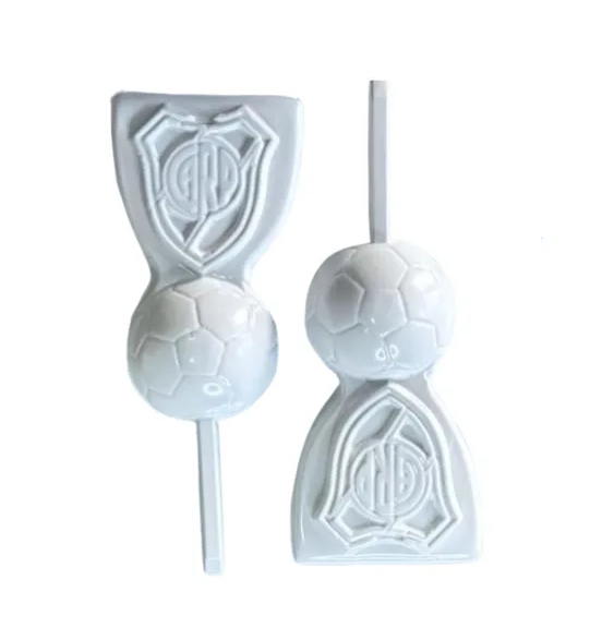 Placa de plástico para chupetín de escudo de river con pelota de futbol.