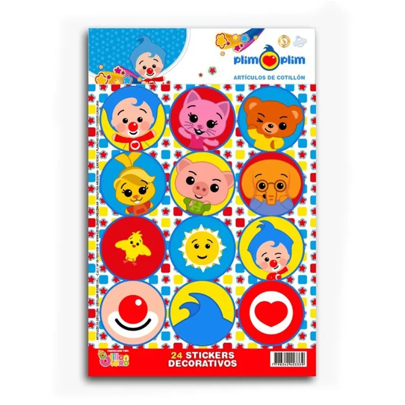 Plancha de stickers de plim plim. 2 Planchas x12 Unidades.