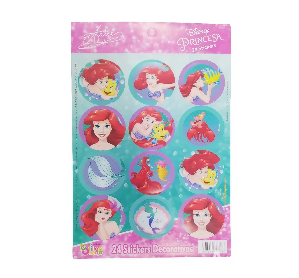 Plancha de stickers de la sirenita. x2 Planchas de 12 stickers.