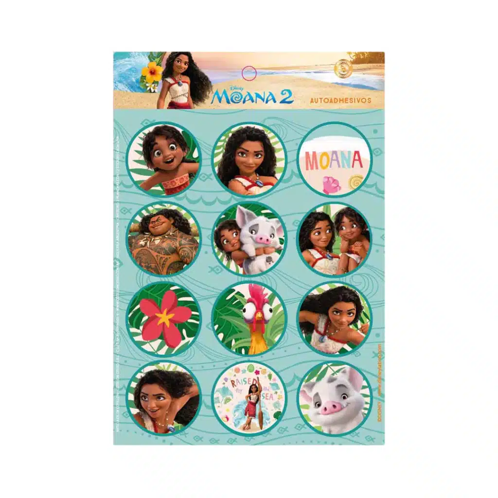 Plancha de stickers de moana. x2 Planchas de 12 stickers.